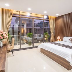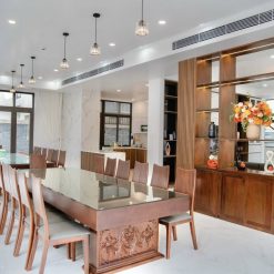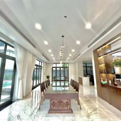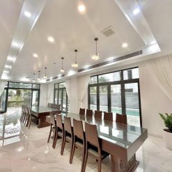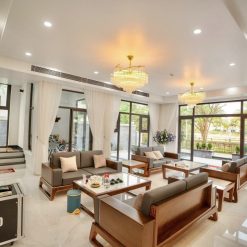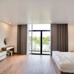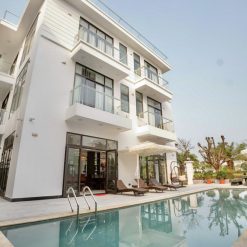 Căn villa vị trí nằm ven hồ Điều Hòa, tổng diện tích 450m2 với khuôn viên rộng rãi. Công năng bao gồm 08 phòng ngủ khép kín sức chứa tiêu chuẩn 24 khách, 01 phòng khách liền kề với không gian bếp.