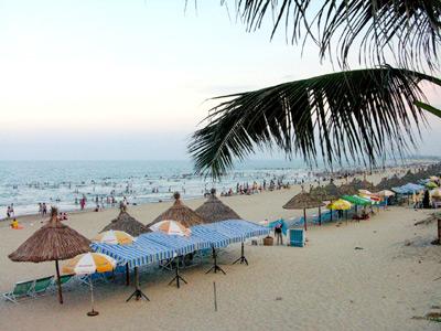 Bãi biển Sầm Sơn dài gần 6km chạy từ cửa Lạch Hới đến chân núi...